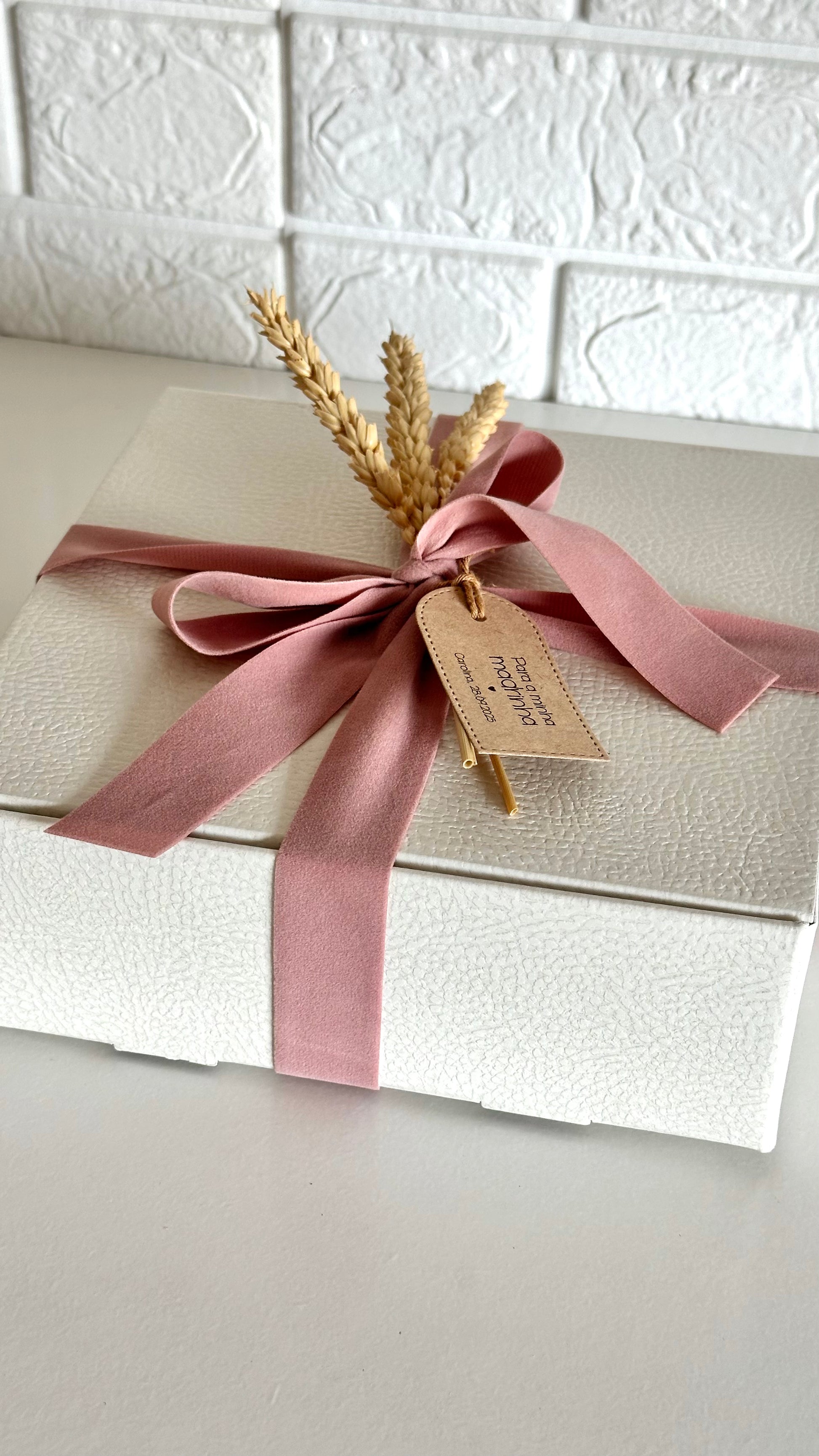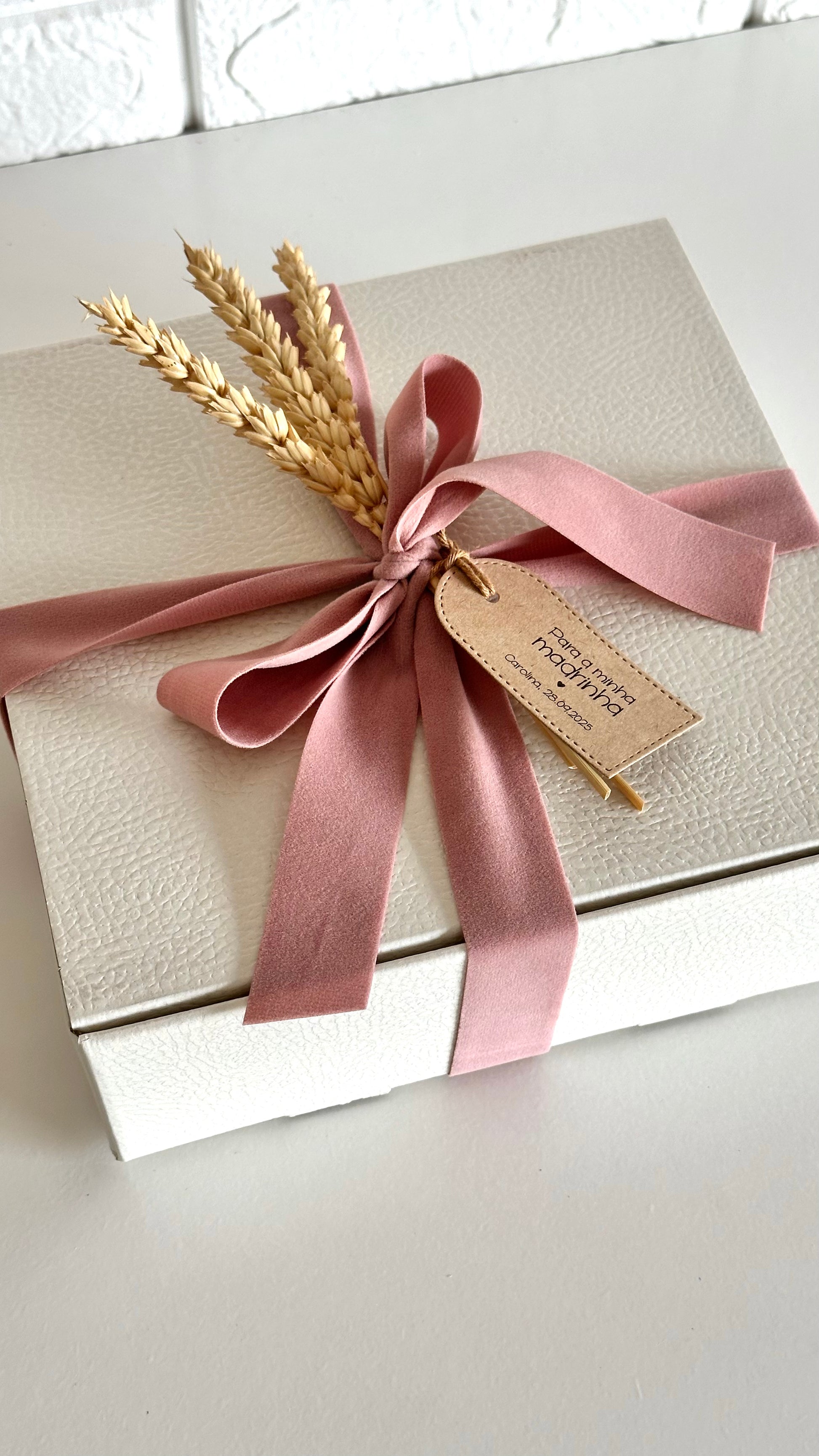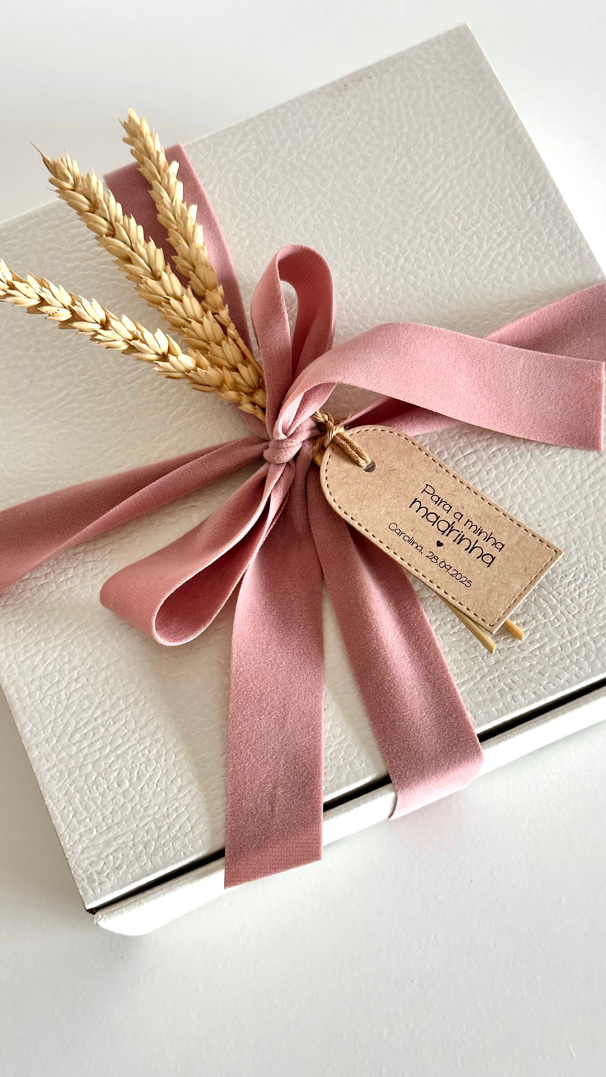 Cada detalhe — da textura da caixa ao laço que a envolve — foi criado para transmitir o calor de um gesto simples: um abraço que se oferece e fica.