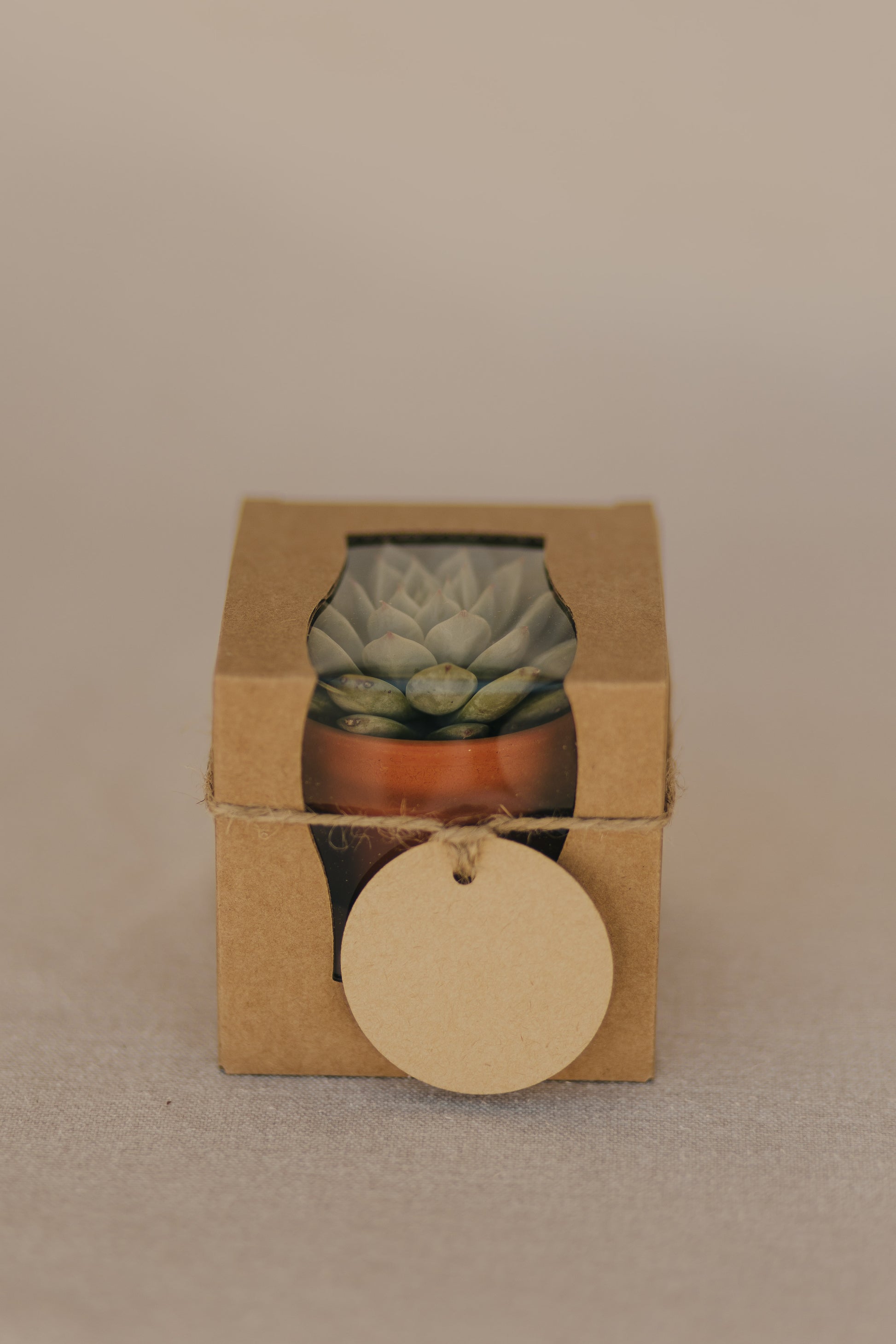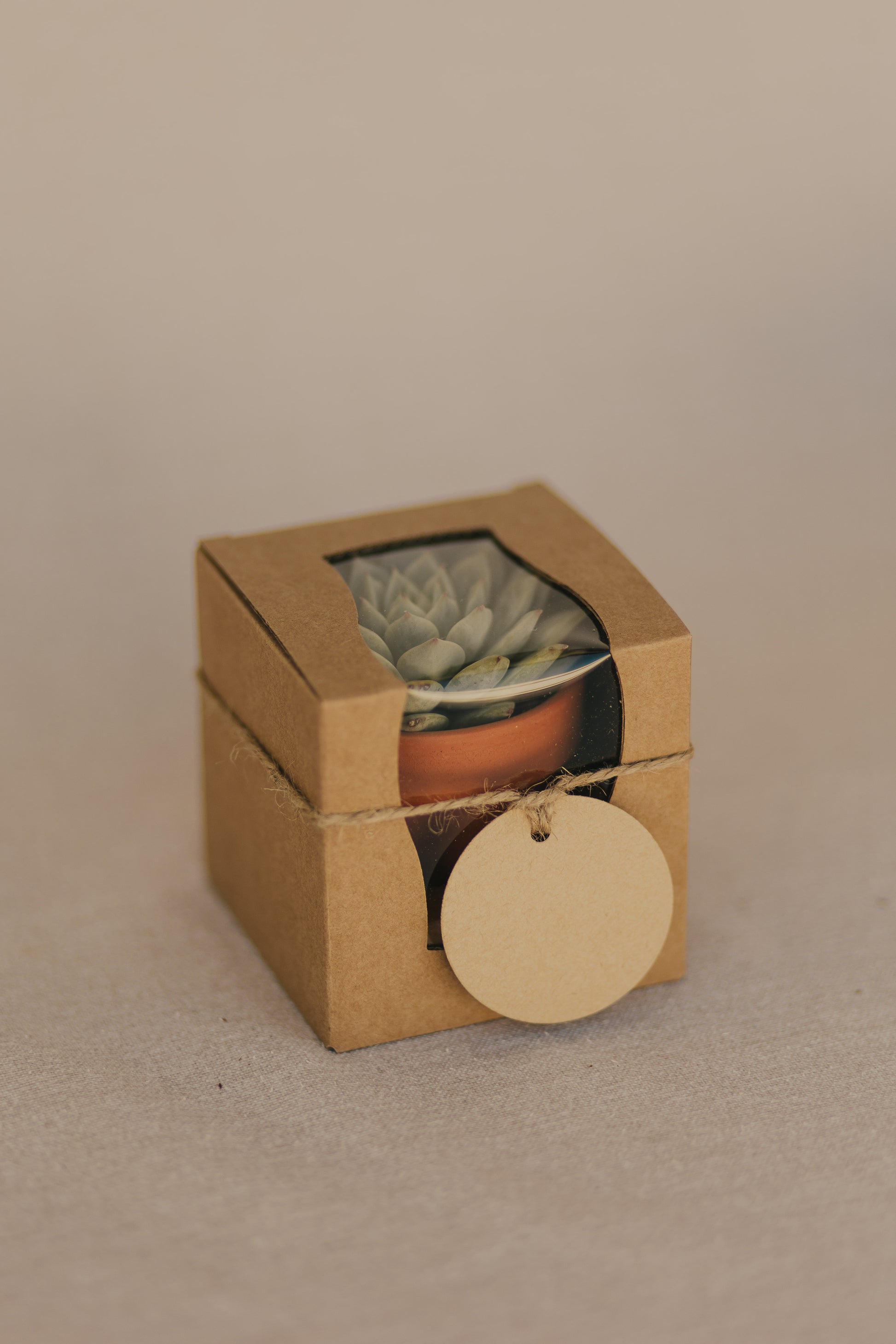 Dentro desta caixinha em kraft com janela frontal, vive uma mini suculenta plantada em vaso de barro — uma lembrança viva, delicada e consciente, perfeita para oferecer em momentos especiais.