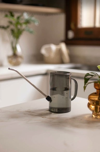 Regador de acrílico com bico de aço inoxidável. Ideal para jardinagem doméstica e cuidado de plantas. Capacidade de 1L.